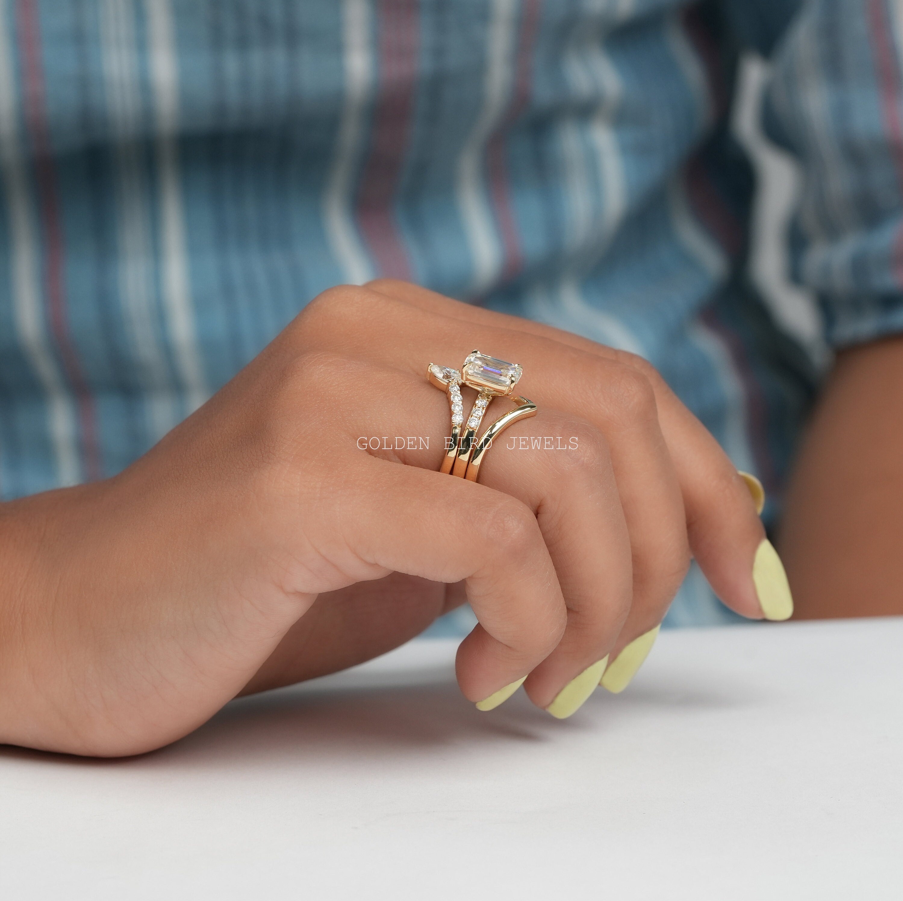 2 25 Ct Emerald Moissanite Bridal Trio Ring Set With Curved Etsy Ireland